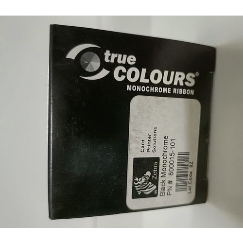 Zebra 800015-101 black monochrome ribbons are primarily used for printing text and one-color line art on one or both sides of a card.