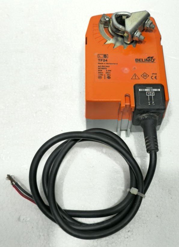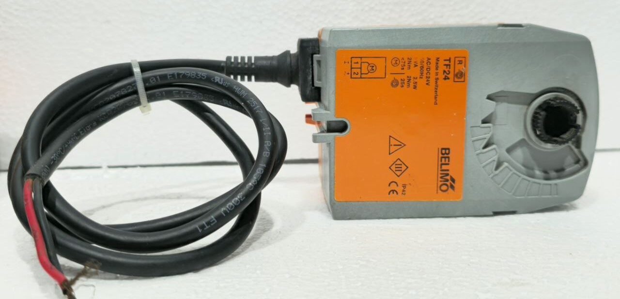 The BELIMO TF24 is a compact and versatile spring-return damper actuator designed for precise and reliable control of air dampers in HVAC systems. Operating on universal 24V AC/DC power (50/60 Hz), it provides 2 Nm (17.7 lb-in) of torque, making it ideal for small to medium-sized ventilation dampers, VAV boxes, and environmental control applications.