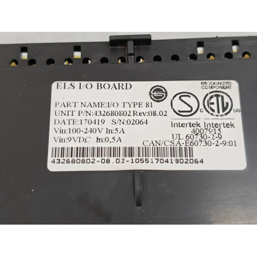 Input/Output (IO) Type 81: This designation refers to the specific electrical interface and communication protocol the board uses. “Type 81” is a legacy ELS designation for a particular set of input and output signals (e.g., specific voltage ranges, PWM, or serial data).