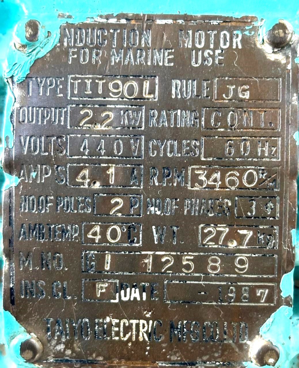 2. Motor Details: TIT90L JG Induction Motor
