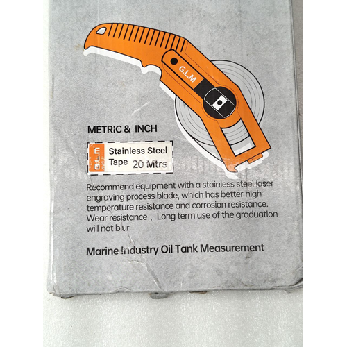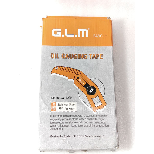 The G L M BASIC TAPE 20 METER Oil Gauging Tape is an essential, heavy-duty tool designed for accurate and reliable liquid level measurement in marine and industrial storage tanks. Engineered to meet the rigorous demands of the shipping and oil cargo industry, this tape allows crew members and surveyors to perform precise ullage (empty space) and innage (liquid depth) measurements safely and efficiently.
