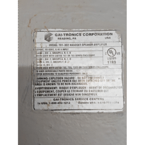 • Reliable GAI-Tronics Quality: As part of the trusted GAI-Tronics product line, the 701-302 is known for its exceptional reliability and long service life in industrial applications.