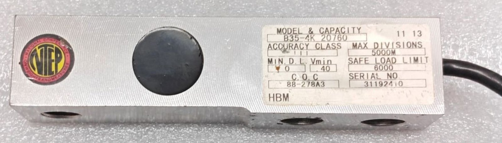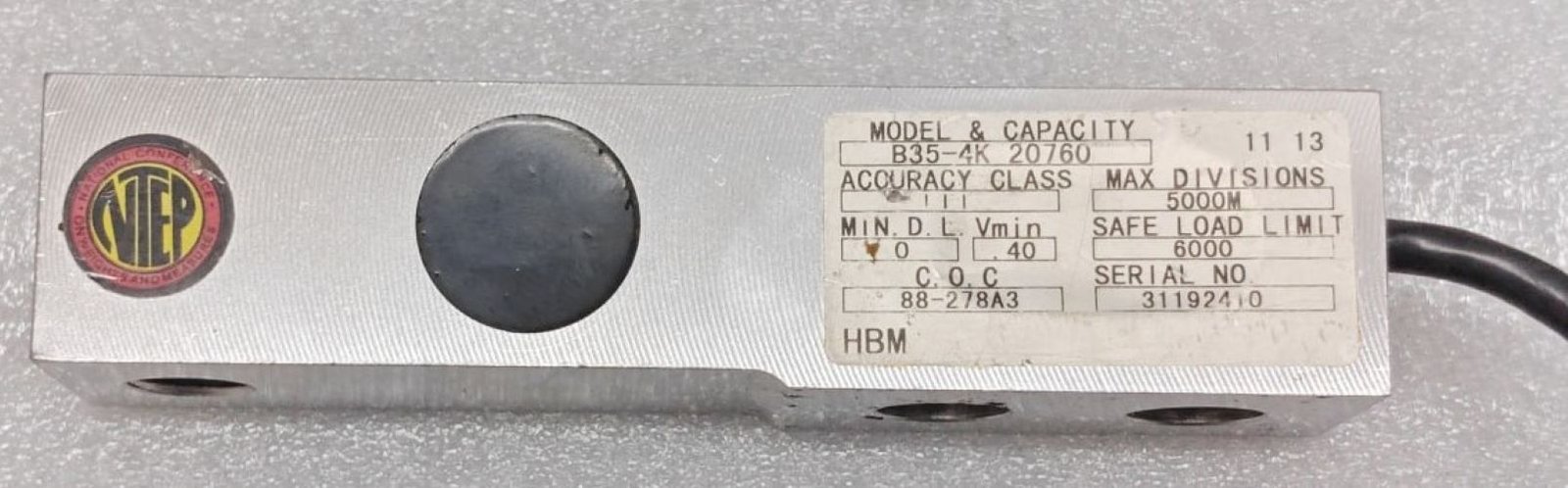 HBM B35-4K-20760 SHAER BEAM LOAD CELL SN. 31192410