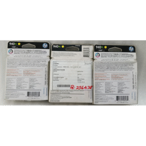 This is a genuine and original HP 940XL Yellow high yield ink cartridge with a model number of HP C4909AA. It is compatible with HP OfficeJet Pro 8000,8000 Enterprise, 8500, and 8500a plus series printers. The ink cartridge is manufactured in Singapore and comes with a unit quantity of 3.