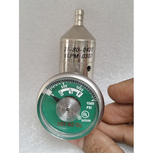 Purpose: Allows the user to monitor the remaining oxygen supply in the cylinder. As oxygen is used, the needle on this gauge will drop, providing a clear visual indication of when the tank needs to be replaced or refilled.