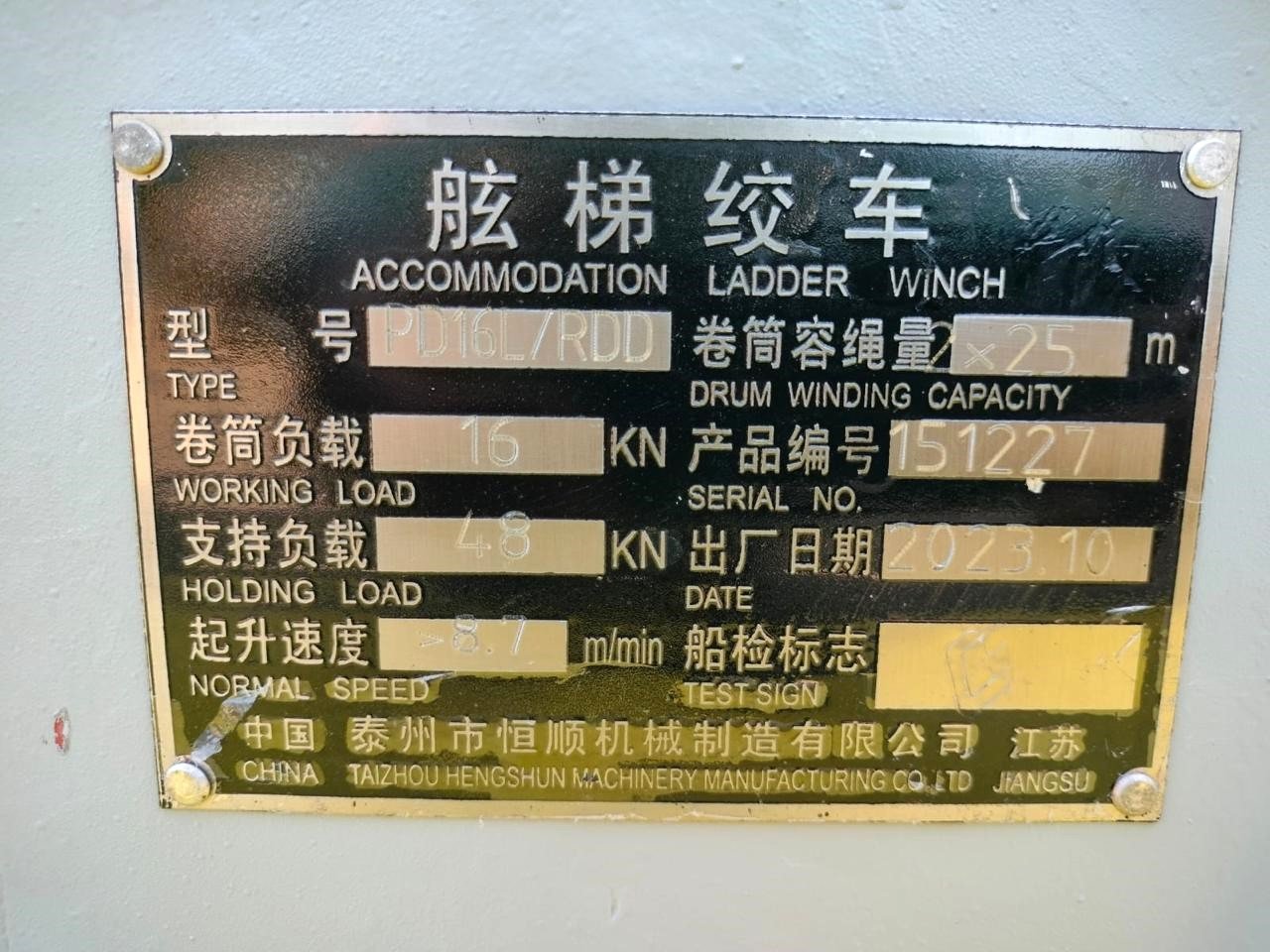 The MARINE ELECTRIC PD16LRDD is a heavy-duty, pneumatically powered accommodation ladder winch designed for safe and reliable deployment and retrieval of accommodation (gangway) ladders on marine vessels. The “151227” denotes a manufacturing date code , indicating a proven design with established service history. This winch is engineered for durability in the harsh offshore and maritime environment.