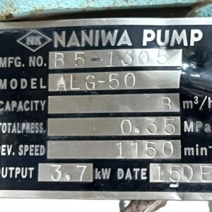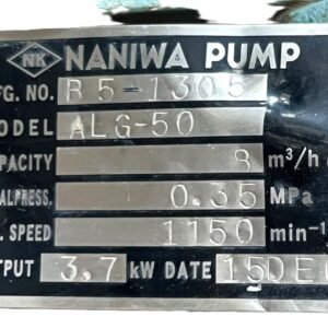 The NANIWA ALG-50 is a robust and reliable external gear pump designed for demanding industrial fluid transfer applications. This specific unit, identified by code B5-1305, comes complete with a sturdy foundation frame and has been rigorously pressure tested to ensure immediate, leak-free operation and performance integrity.
